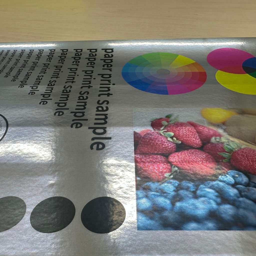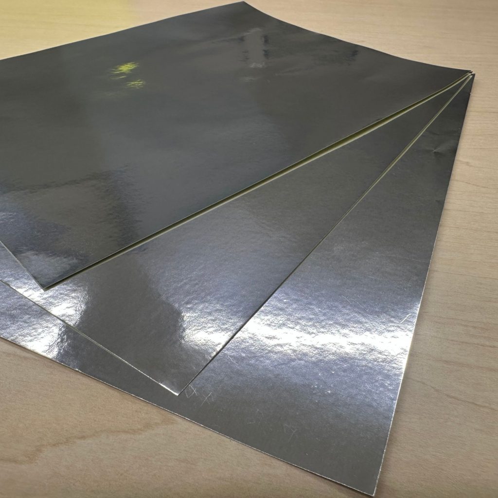 商品紹介(どんな商品?) アルミ蒸着ギフトラベルシール用紙ホイルタック銀艶メタリックタック紙粘着紙紙もっと! 華やかな輝き『ホイルタック 銀(艶)』|メタリックタック紙 商品紹介(どんな商品?) 2025.11.13 ホイルタック 銀(艶)とは?高級感あるメタリックタック紙 「ホイルタック 銀(艶)」は、紙の上にアルミ蒸着を施し、その上貼り合わせと粘着層を備えた高級感あるメタリックタック紙です。通常のタック紙とは一線を画し、銀色の輝き/強粘着仕様/貼るだけで視認性の高いデザイン効果を発揮します。ギフトラベル、限定商品のシール、特別なプロモーション用途などで活躍する素材です。 目次 ホイルタック 銀(艶)とは?特徴・質感厚さ・構成と用途まとめ:こんな方におすすめ ホイルタック 銀(艶)とは? 『ホイルタック』シリーズの銀(艶)タイプは、上質紙ベースにアルミ箔を貼り合わせ、さらに粘着剤とセパレート紙を重ねた構造になっています。銀(艶)は“ツヤのある銀色”を持つタイプです。この構造により、「紙+金属感+粘着」の三機能を併せ持つ、視覚的インパクトの強いシール素材となっています。 特徴・質感 圧倒的な銀の艶感 鏡面に近い輝きで、高級感や特別感を強く演出できる。粘着付きで扱いやすい 商品ラベル・封緘シールなどにそのまま使用可能。印刷適性あり オンデマンド印刷・オフセット印刷に対応(白インキが必要な場合あり)。 濃い色でのデザインが特に映える素材。加工適性◎ カット・抜き加工・箔押し・エンボスなどとの相性が良い。目立つ“装飾性”の高さ 通常の紙では出せない、視認性抜群の質感が魅力。 厚さ・構成と用途 【構成】・表面:アルミ蒸着紙(艶銀タイプ)・中層:粘着剤(一般粘着)・裏面:黄色のセパレーター【主な用途】・ギフトラベル:貼るだけでプレミアム感を演出。・限定パッケージ・記念商品用シール・特別感を見せたい時に抜群の効果・ボトルラベル、瓶ラベル:銀の反射でラグジュアリーな印象に。ちなみに、艶もあれば消し銀(マットな銀)もあります! まとめ:こんな方におすすめ とにかく目を引くラベルを作りたいギフト・限定商品など高級感を出したいデザインの主役として“素材の輝き”を使いたい店頭での視認性を上げたいブランド担当者型抜きや箔押しなどの加工も楽しみたいデザイナー ホイルタック銀(艶)を注文する 紙の専門のECサイト『紙もっと!』はこちらから 株式会社立川紙業五十嵐 広治(いがらし こうじ)日本洋紙板紙卸商業組合 認定「紙営業士」株式会社立川紙業/ECサイト「紙もっと!」管理人紙とともに育ち、紙を愛し、紙の魅力を伝えることを仕事にしています。現在は、株式会社立川紙業にて以下を中心に活動中・ECサイト「紙もっと!」の企画・運営・コーポレートサイト/ブログの制作・更新・InstagramやyoutubeなどSNS運用による情報発信全国の印刷会社・デザイナー・個人ユーザーに向けて紙の楽しさ・奥深さを日々発信しています。