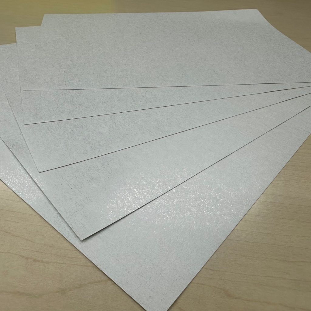 和紙タック 銀かすみは、和紙基材に微細な銀の“かすみ模様”を施したタック紙です。
