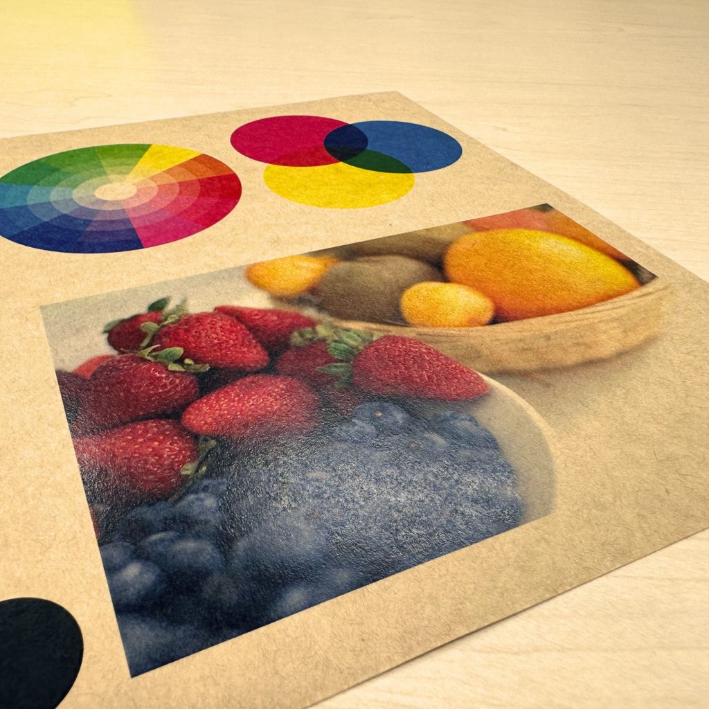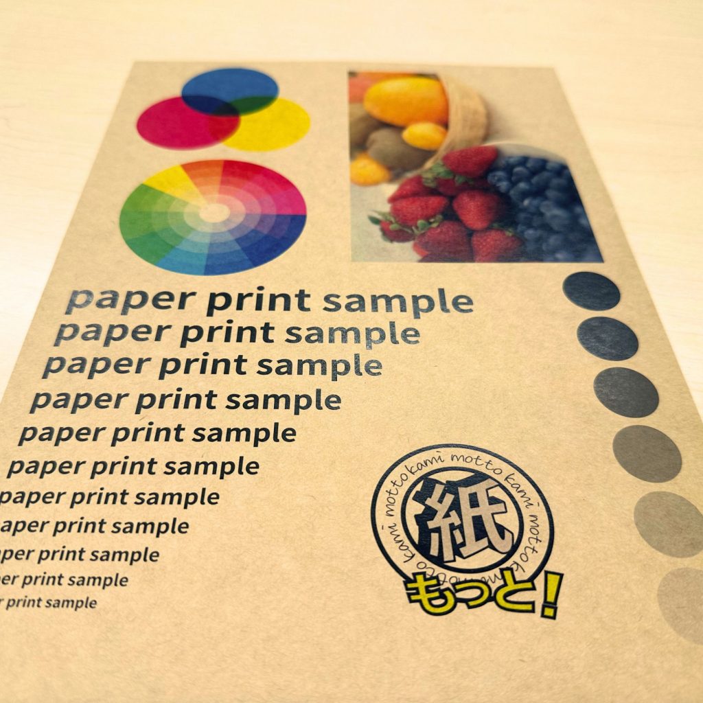 印刷をかけるとクラフト紙ならではの“深み”が生まれ、落ち着いたデザインや素朴さを活かした表現に適しています。