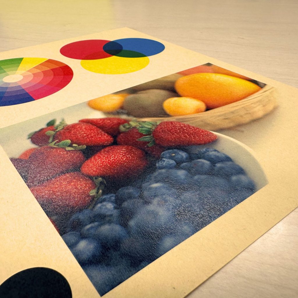 黒・白・濃色インキがよく映える。クラフト紙でも実用性が高い