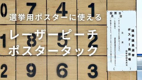「レーザーピーチポスタータック110」は、レーザープリンター対応の耐水タック紙で、屋外使用に強い・破れにくい・強粘着という三拍子そろった高耐久素材です。厚みは 0.11mm(110μ) としっかりしており、ラミネート加工をしなくても優れた耐候性を発揮します。店頭掲示から屋外ポスター、さらには選挙ポスターまで幅広く使われる、ポスター用タック紙のスタンダードな一枚です。