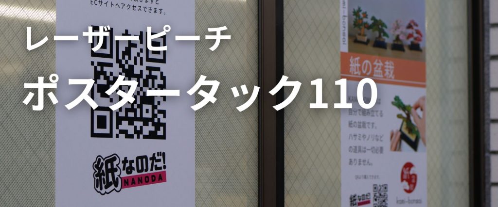 「レーザーピーチポスタータック110」は、合成紙ベースの耐水タック紙で、レーザープリンター専用に設計された屋外対応素材です。