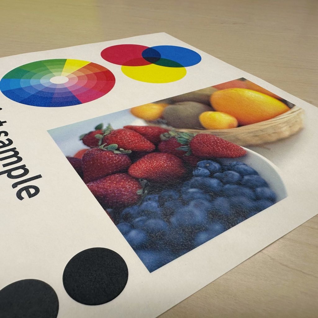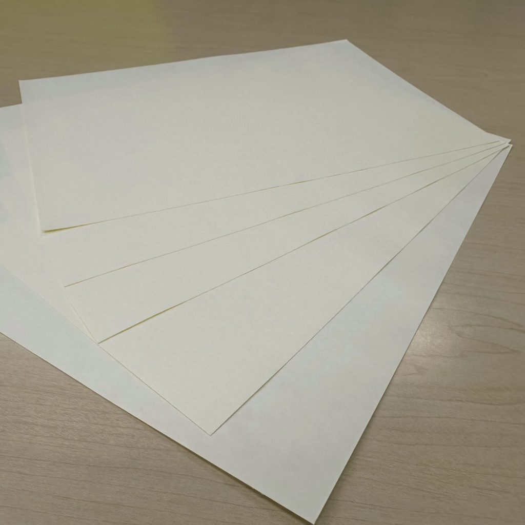 優しい紙色がインクの発色を引き立てる。加工対応も良好